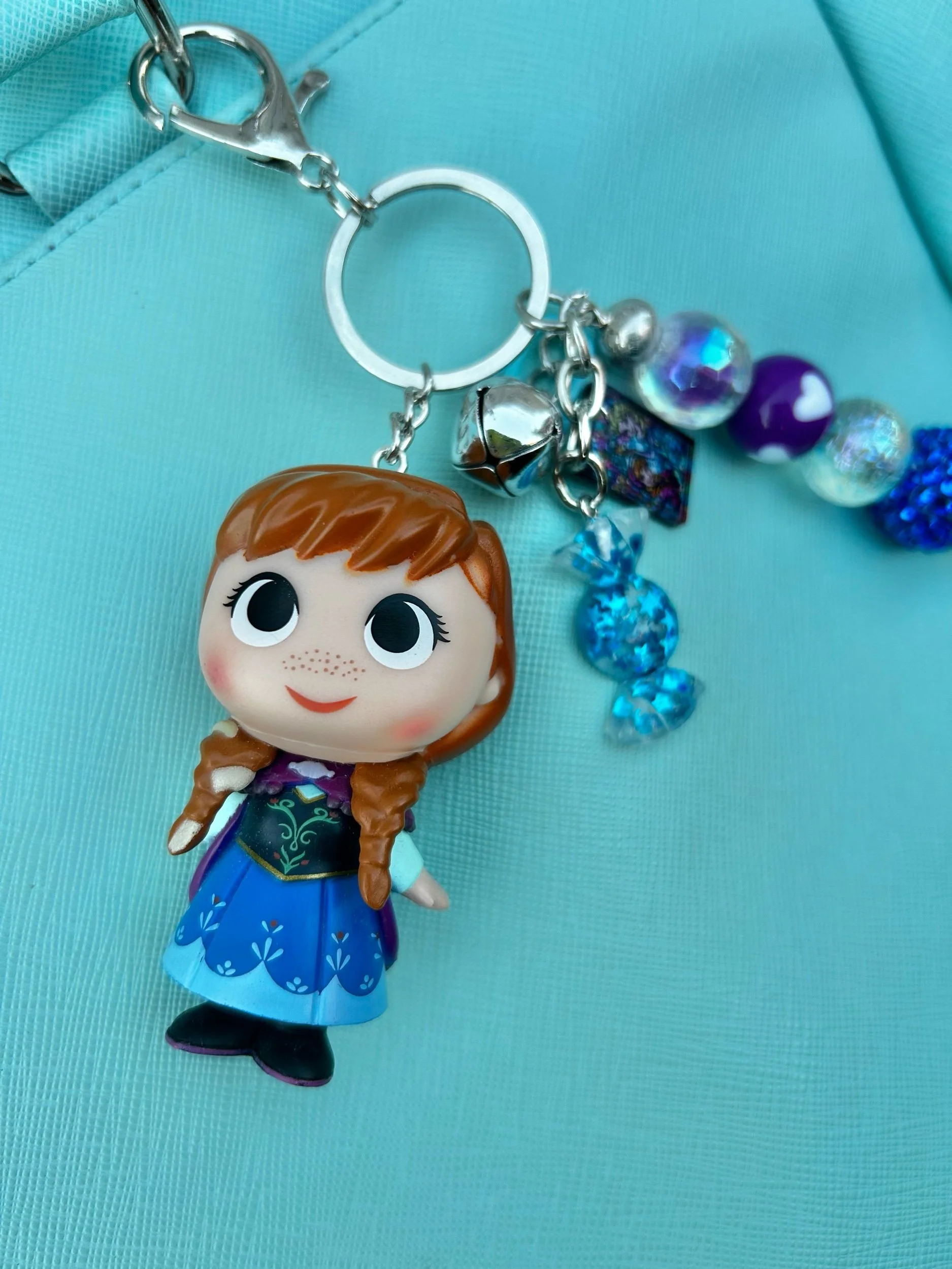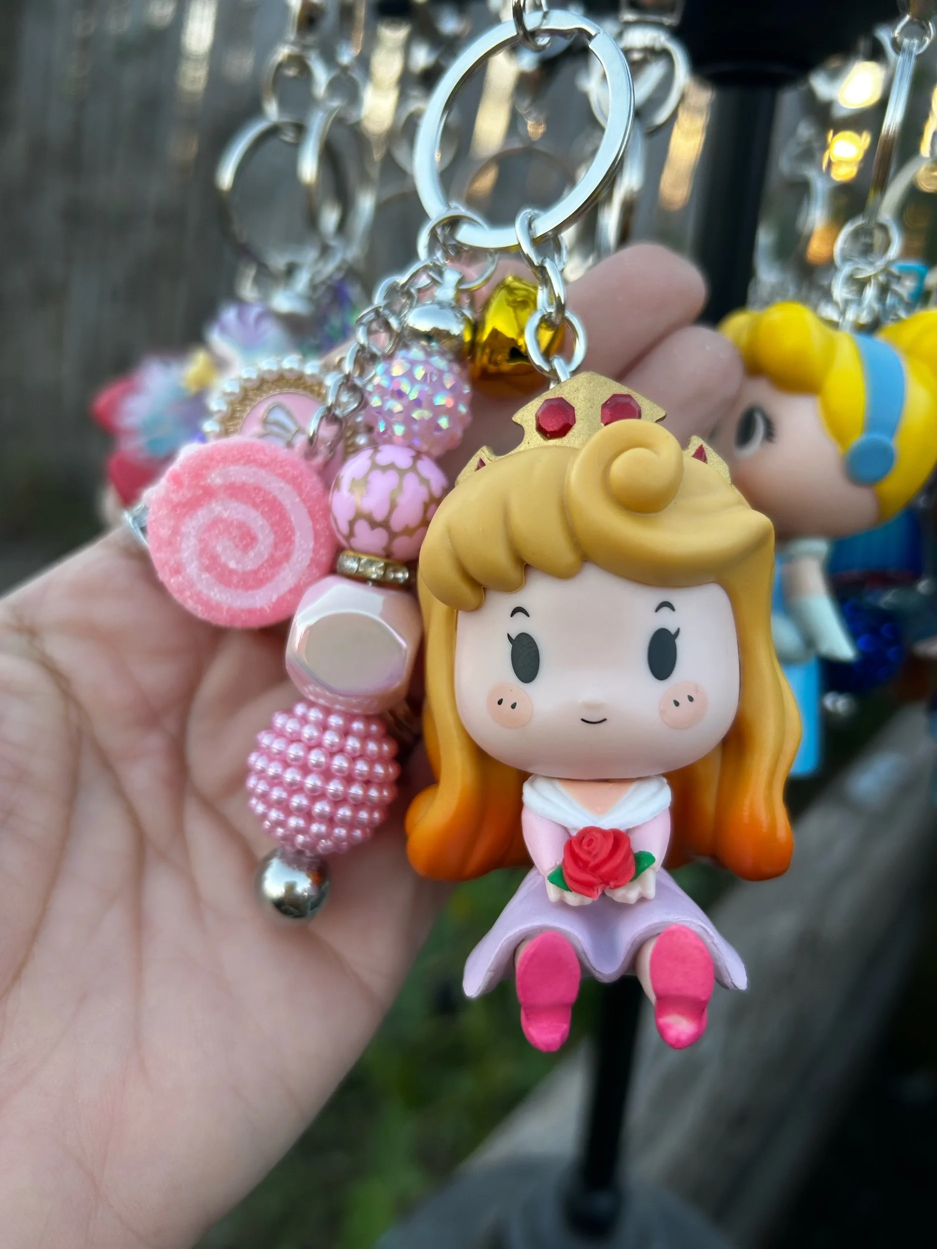 This handcrafted SLEEPING BEAUTY bag charm is the perfect pop of sparkle for your purse, backpack, keys, or diaper bag.